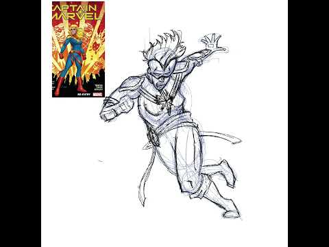 Working on a quick sketch of Captain Marvel from Marvel Comics.